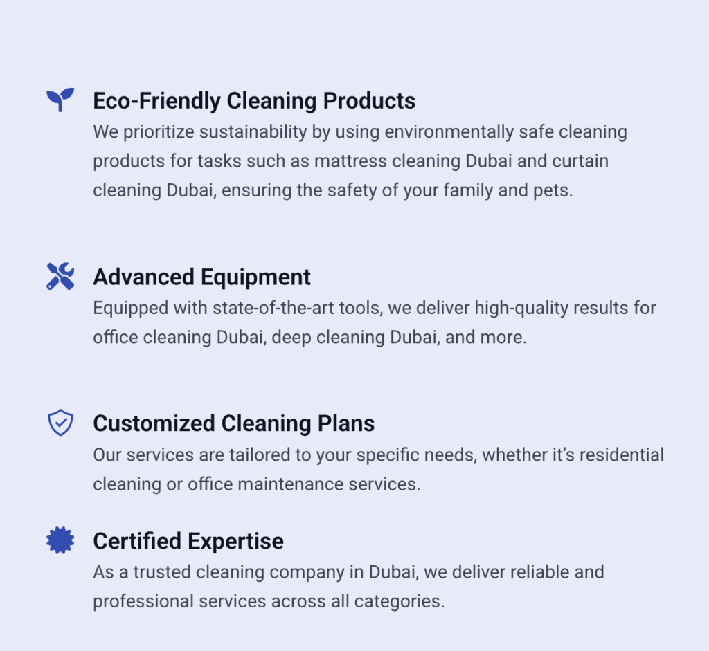 - Dubai: Comprehensive solutions for homes and businesses, including deep cleaning Dubai and sofa upholstery cleaning Dubai.